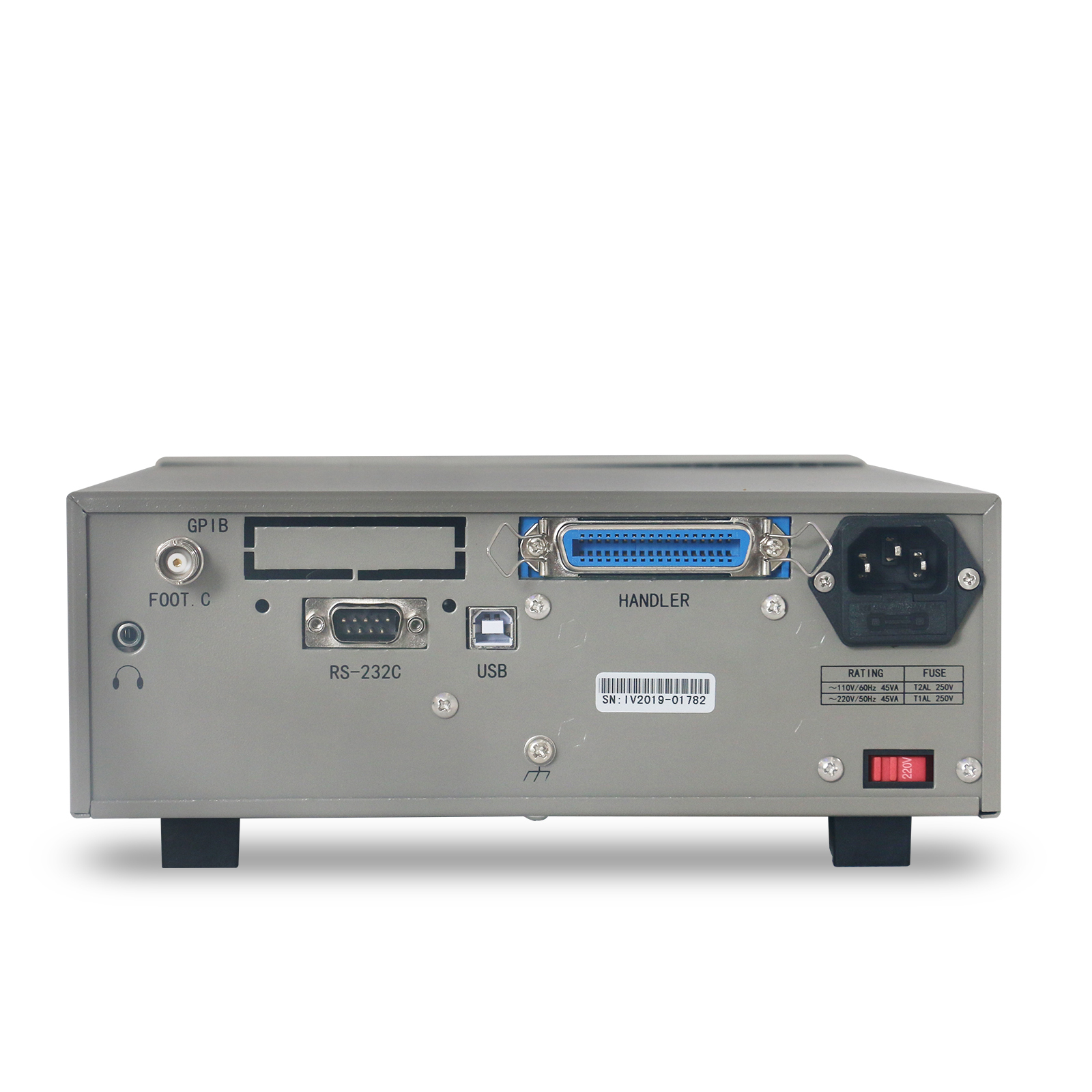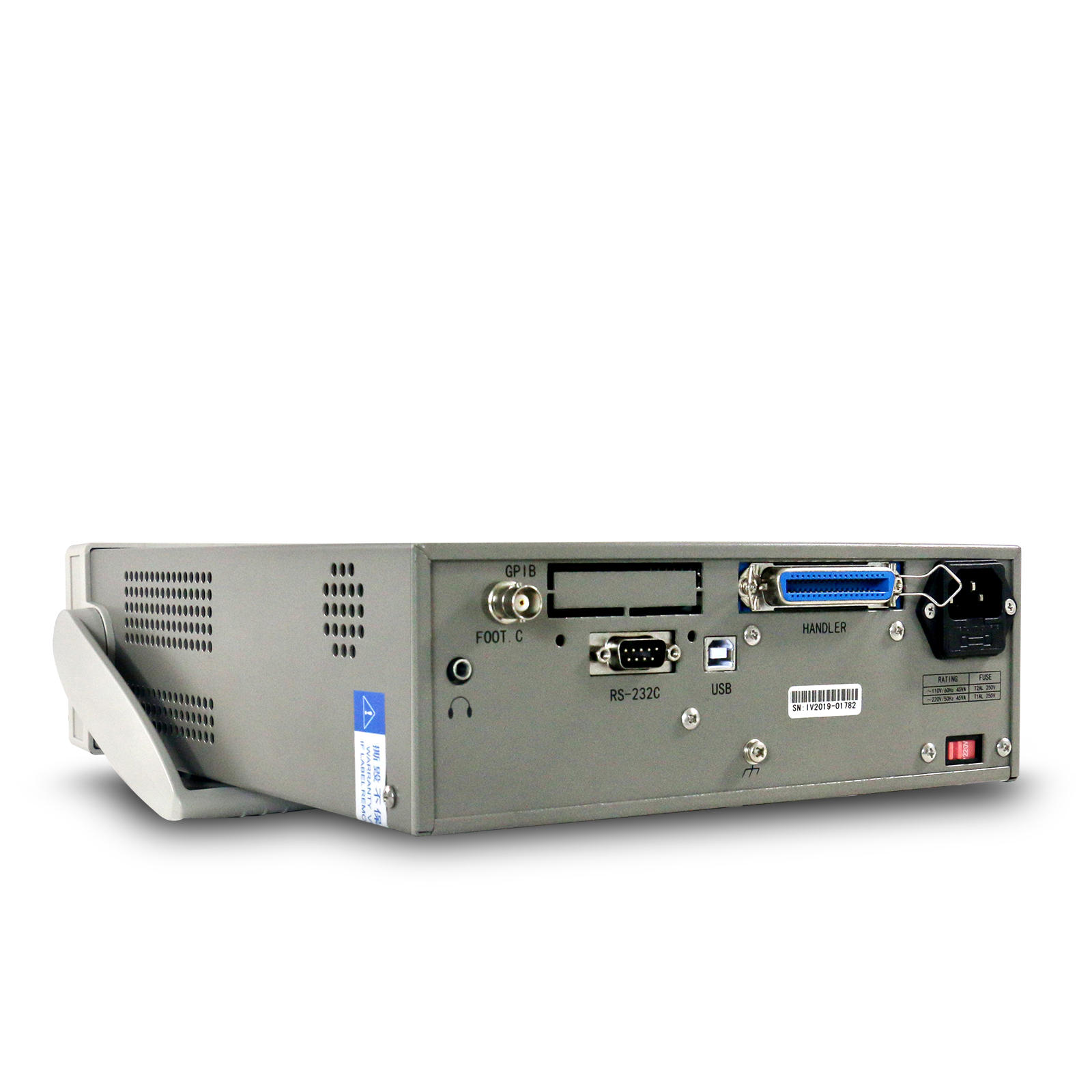 接口標配RS-232C, HANDLER, USB HOST, USB DEVICE, 耳機接口 腳踏接口;可選GPIB,LAN