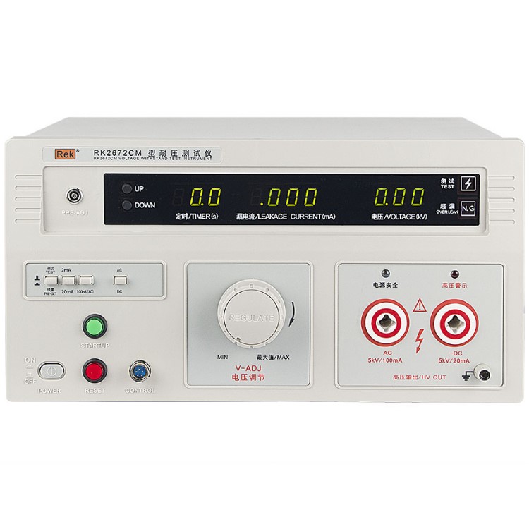 美瑞克RK2672系列耐壓測試儀是測量耐壓強度的儀器,可以直觀、準確、快速地測試各種被測對象的擊穿電壓、漏電流等電氣安全性能指標,并可以作為高壓源用來測試元器件和整機性能。